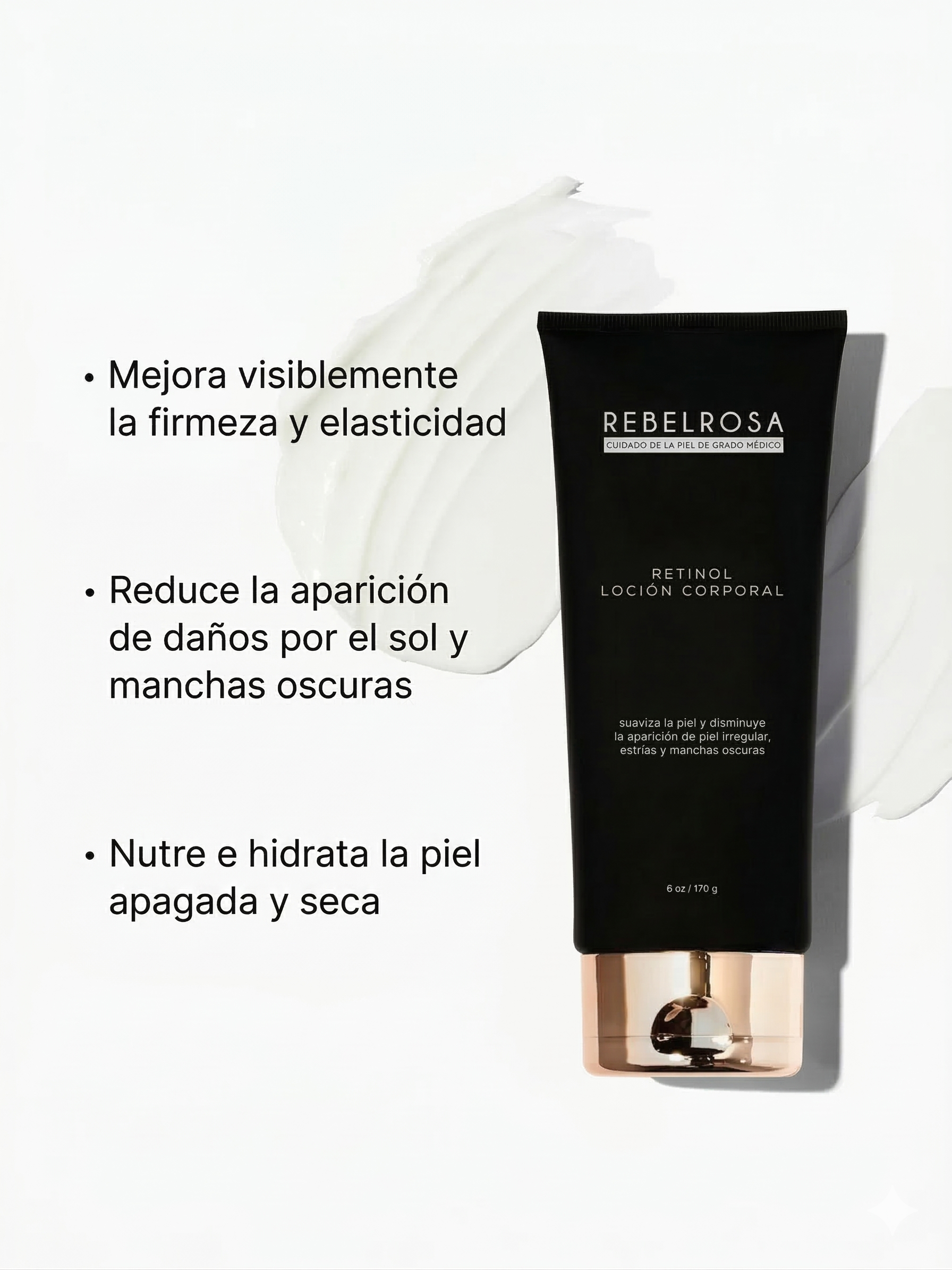 Retinol Body Lotion es una crema corporal avanzada con retinol concentrado que estimula la renovación celular, mejora visiblemente la firmeza y la elasticidad, y transforma la textura de tu piel desde la primera semana.